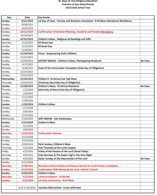 Confirmation: Sunday, April 19, 2026 at 2:00 pm at St. Patrick's Church